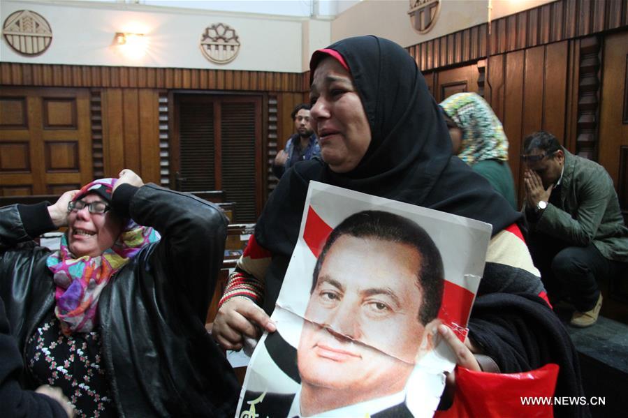 مؤيدو الرئيس المصري السابق حسني مبارك في محكمة في القاهرة بمصر، 9 يناير 2016. (شينخوا / أحمد جمعة)