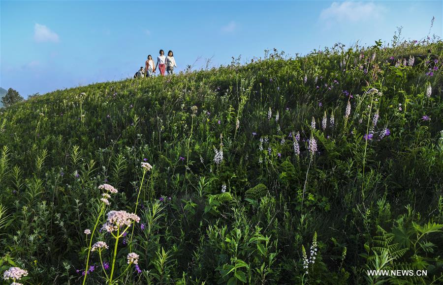صور جوية للمروج الخضراء على جبل في مدينة تشينغيانغ