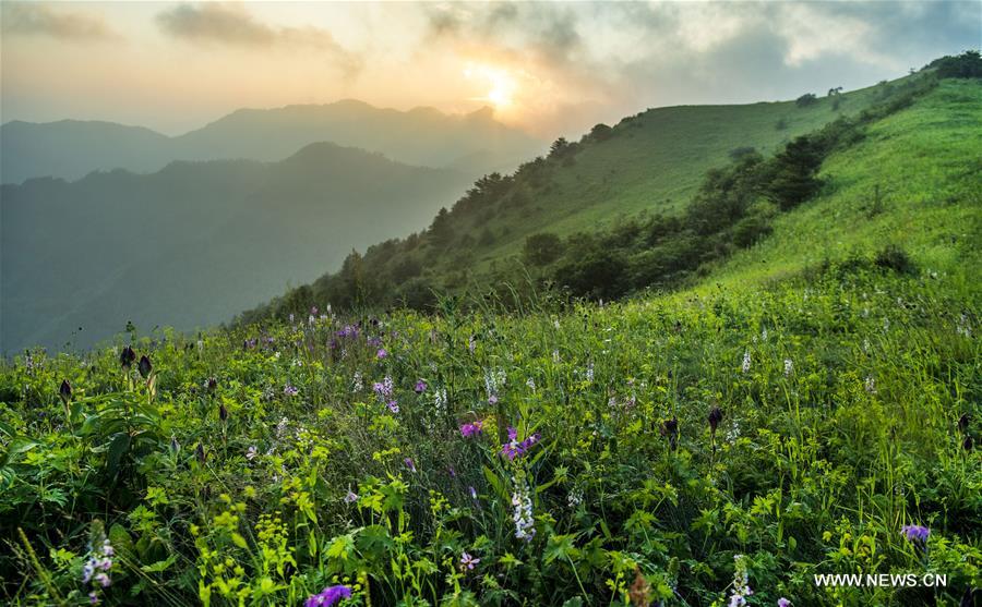صور جوية للمروج الخضراء على جبل في مدينة تشينغيانغ