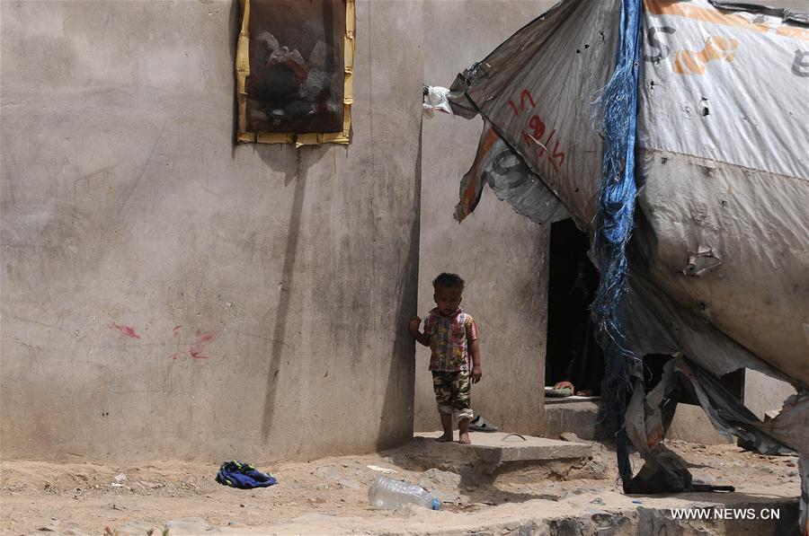 23 يوليو 2018 (شينخوا) في الصورة الملتقطة يوم 22 يوليو 2018، مشهد لطفل مشرد يقف أمام مدخل بيت بمنطقة عشوائية في صنعاء باليمن.الكثير من الأسر المشردة القادمة من ميناء الحُديدة لا تجد فرصة لدخول مخيمات المشردين في صنعاء، وبدلا من ذلك يقيمون في المناطق العشوائية في صنعاء .أكثر من 35000 أسرة شُردت مؤخرا من ميناء الحديدة على البحر الأحمر بسبب القتال العنيف بين القوات الحكومية ومتمردي جماعة الحوثي، وفقا لما أعلنه مكتب تنسيق الشؤون الإنسانية في 16 يوليو.