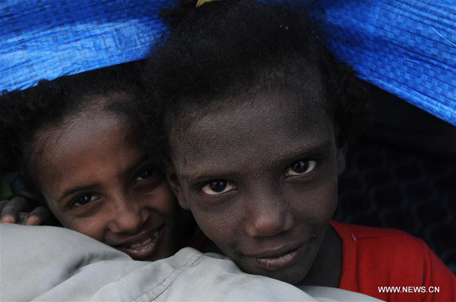 23 يوليو 2018 (شينخوا) في الصورة الملتقطة يوم 22 يوليو 2018، مشهد لطفلين مشردين ينظران من محل إقامتهما بمنطقة عشوائية في صنعاء باليمن. الكثير من الأسر المشردة القادمة من ميناء الحُديدة لا تجد فرصة لدخول مخيمات المشردين في صنعاء، وبدلا من ذلك يقيمون في المناطق العشوائية في صنعاء. أكثر من 35000 أسرة شُردت مؤخرا من ميناء الحديدة على البحر الأحمر بسبب القتال العنيف بين القوات الحكومية ومتمردي جماعة الحوثي، وفقا لما أعلنه مكتب تنسيق الشؤون الإنسانية في 16 يوليو.