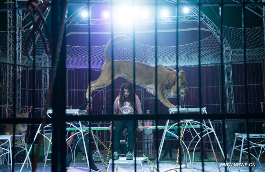 القاهرة 18 ديسمبر 2018 (شينخوا) في الصورة الملتقطة يوم 13 ديسمبر 2018، مروضة الأسود شروق إسماعيل تجالس الأسود في القاهرة، حيث أسرت الفتاة البالغة من العمر 15 عاما قلوب المشاهدين حول قفص السيرك في استعراض مسائي رائع، حيث ولدت شروق في اسرة تشتهر بترويض الأسود، حيث اشتهر جدها بنجم ترويض أسود السيرك في القرن الـ19، كما تخصص ابيها وامها وعمها ايضا في ترويض الأسود.