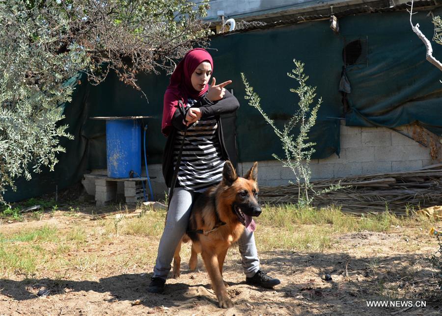 (وسائط متعددة)مقالة خاصة: اخصائية نفسية تصبح أول مدربة كلاب في غزة