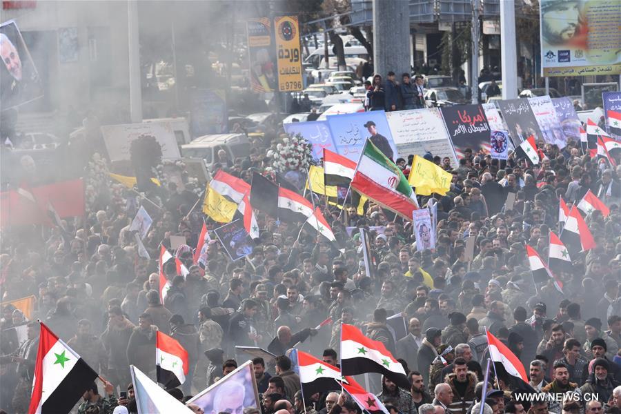 مئات السوريين يشاركون في مراسم تشييع رمزية للتعازي في وفاة قاسم سليماني بمدينة حلب
