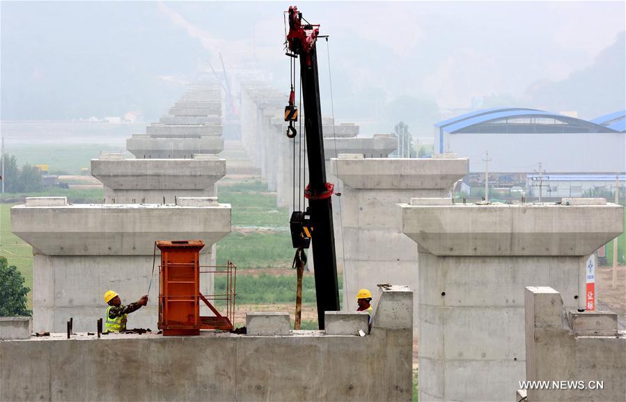 بناء جسر النهر الأصفر في وسط الصين