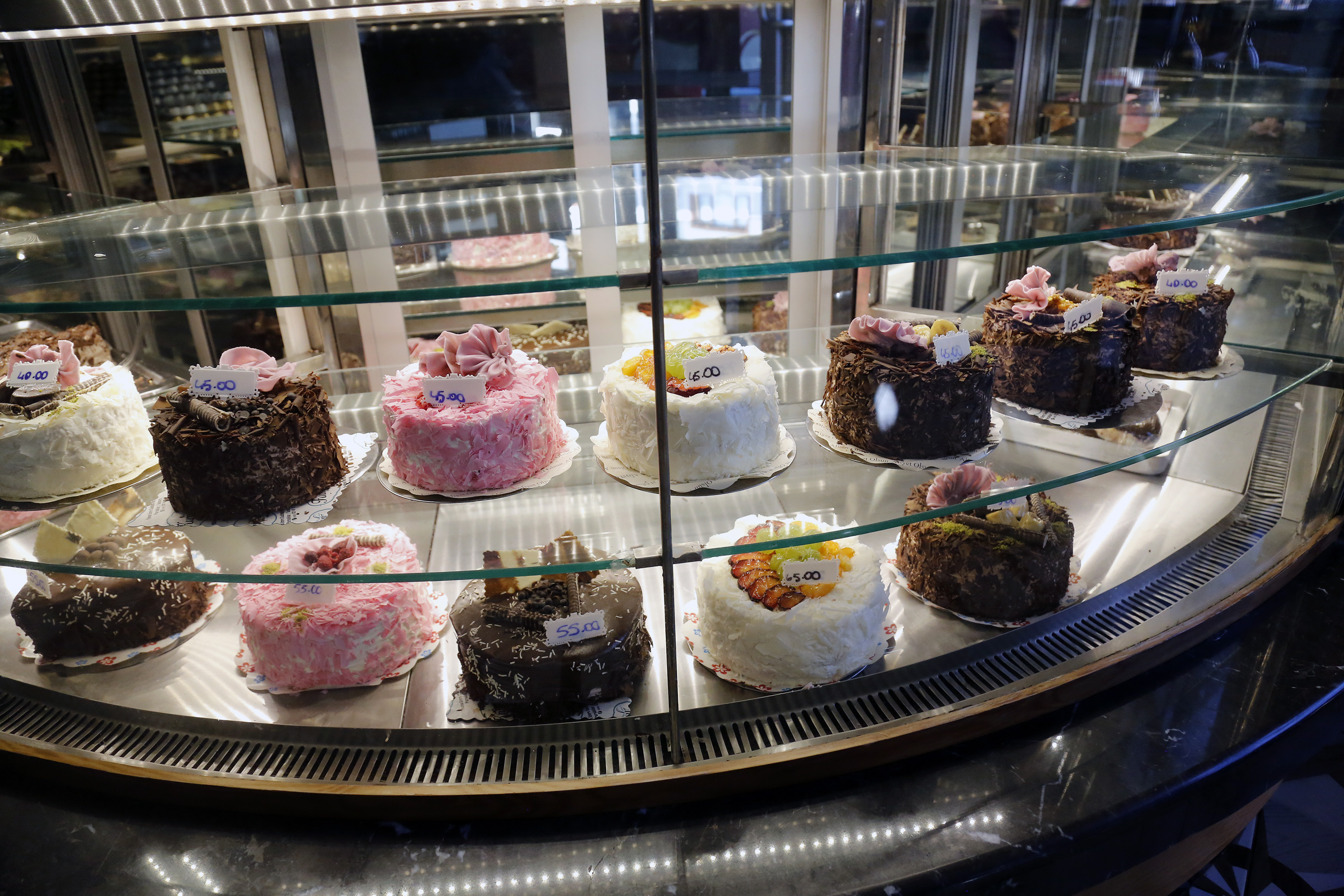 عرض أنواع مختلفة من الحلويات التقليدية التركية في أنقرة، تركيا، 30 يوليو 2020. فتناول الحلوى يعد تقليدا تركيا خلال عيد الأضحى. (شينخوا)