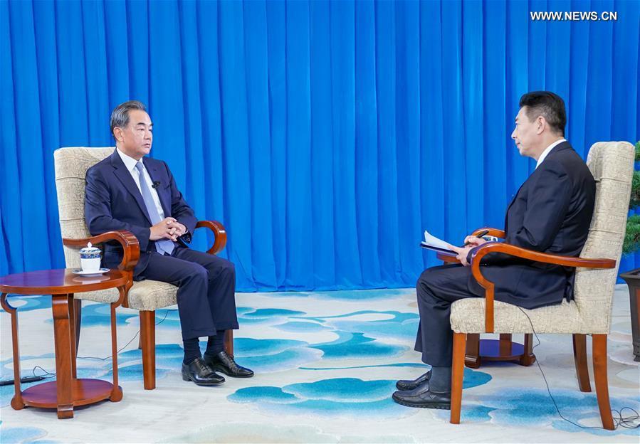 في الصورة الملتقطة يوم 5 أغسطس 2020، عضو مجلس الدولة ووزير الخارجية الصيني وانغ يي يجري مقابلة حصرية مع وكالة أنباء ((شينخوا)) حول العلاقات الصينية-الأمريكية في العاصمة الصينية، بكين.