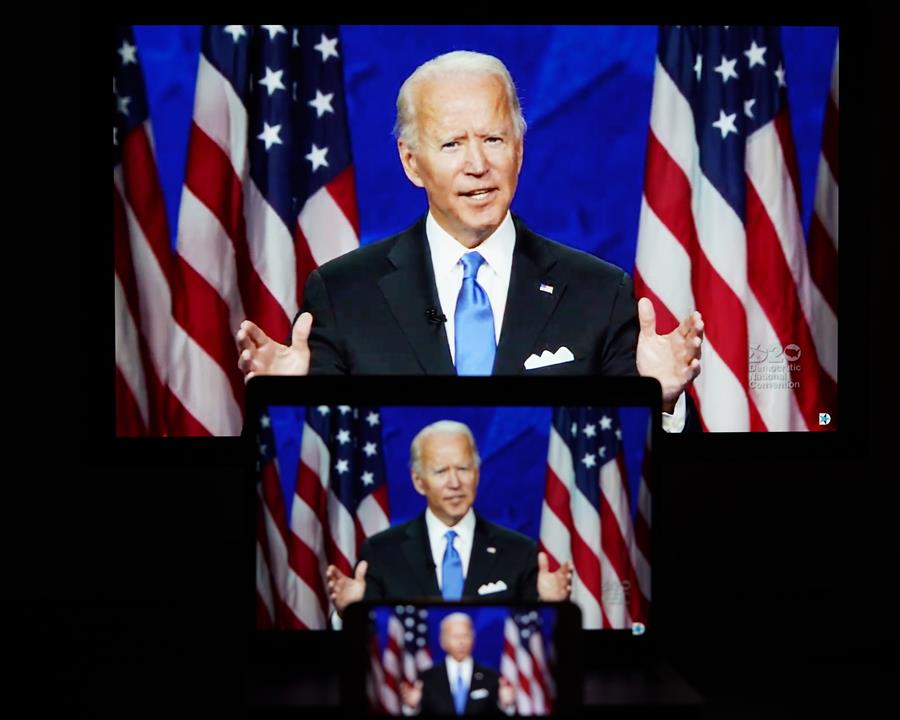 وسلط المرشح الديمقراطي البالغ من العمر 77 عاما، والذي يخوض انتخابات الرئاسة للمرة الثالثة، الضوء على "أربع أزمات تاريخية" تواجه الولايات المتحدة الآن: وباء فيروس كورونا الجديد الذي أصاب أكثر من 5.5 مليون شخص وأودى بحياة أكثر من 170 ألفا في البلاد، واقتصاد وطني يعاني من أسوأ ركود منذ الكساد الكبير، واحتجاجات كاسحة في جميع أنحاء البلاد من أجل العدالة العرقية في أعقاب مقتل الأمريكي الأفريقي جورج فلويد جراء وحشية الشرطة، والتدهور السريع لتغير المناخ.