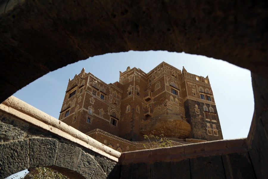 صورة تم التقاطها في أول يناير 2021 تظهر دار الحجر الأثري التاريخي في العاصمة اليمنية صنعاء.(شينخوا)■