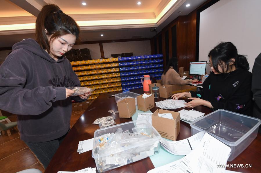 تشوجي 3 مارس 2021 (شينخوا) في الصورة الملتقطة يوم 2 مارس 2021، لين يي كون وزملائها يعملن في ورشة في قرية شانشياهو في مدينة تشوجي في مقاطعة تشجيانغ شرقي الصين.