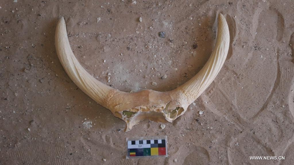 في الصورة الملتقطة يوم 11 مايو 2021، عظام حيوان تم اكتشافها من مقابر صخرية بمنطقة جبلية بمحافظة سوهاج بمصر. قالت وزارة الآثار والسياحة المصرية اليوم (الثلاثاء) إن بعثة أثرية مصرية اكتشفت 250 مقبرة صخرية ترجع إلى فترات مختلفة تتراوح ما بين نهاية الدولة القديمة حتى نهاية العصر البطلمي.