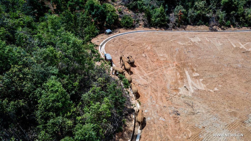 أشان 30 مايو 2021 (شينخوا) في الصورة الملتقطة يوم 28 مايو 2021، قطيع من الأفيال الآسيوية البرية في محافظة أشان بمقاطعة يوننان جنوب غربي الصين. ويهاجر القطيع المؤلف من 15 فيلا آسيويا بريا نحو الشمال من موطنه التقليدي في الولاية الواقعة بأقصى جنوبي المقاطعة ابتداء من يوم 16 أبريل الماضي وقطعت مسافة تبلغ نحو 500 كيلومتر وعبرت نصف المقاطعة تقريبا خلال أكثر من 40 يوما. واتخذت السلطات تدابير لمنع أي مواجهات بين البشر والأفيال التي قد تضل طريقها إلى أماكن تؤوي سكانا.