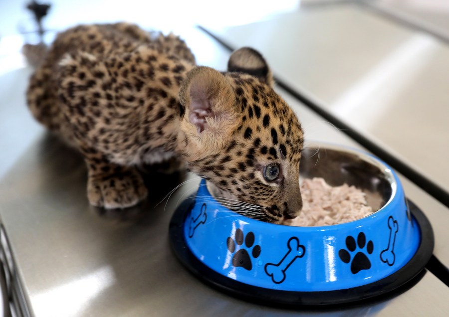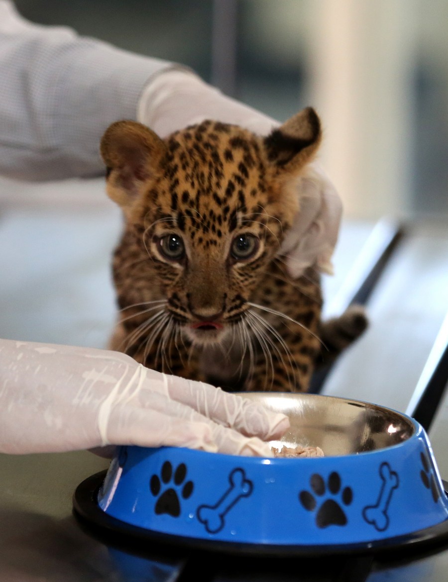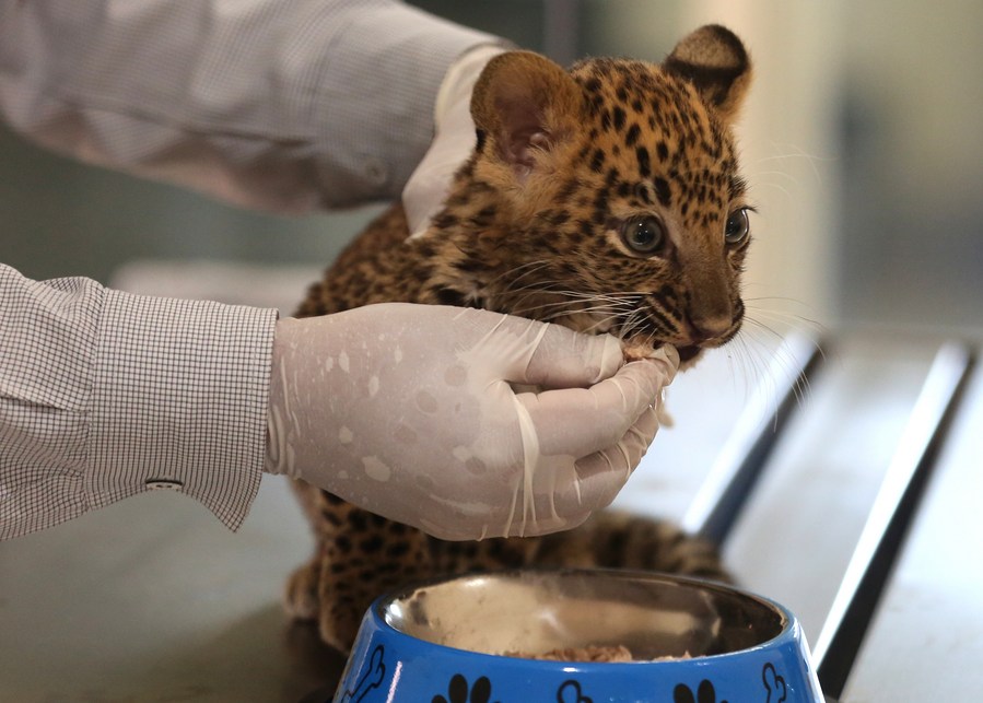 الصورة أعلاه تظهر مسؤولا بهيئة الحياة البرية يطعم شبل نمر عمره شهران في حديقة فان فيهار الوطنية، في بوبال، حاضرة ولاية ماديا براديش الهندية، في 30 مايو 2021. (شينخوا)