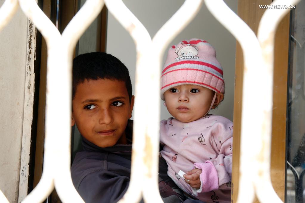 صنعاء 31 مايو 2021 (شينخوا)في الصورة الملتقطة يوم 30 مايو 2021، طفلان يمنيان داخل منزلهما في صنعاء باليمن.