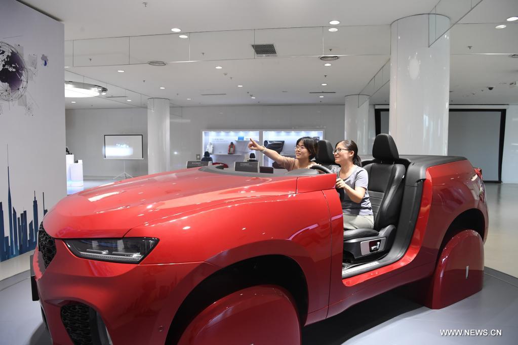 باودينغ 19 يوليو 2021 (شينخوا) في الصورة الملتقطة يوم 15 يوليو 2021، زائرتان تجربان تكنولوجيا القيادة الذكية القائمة على شبكة الجيل الخامس بمركز تكنولوجيا هافال لشركة جريت وول موتور في مدينة باودينغ بمقاطعة خبي شمالي الصين.
