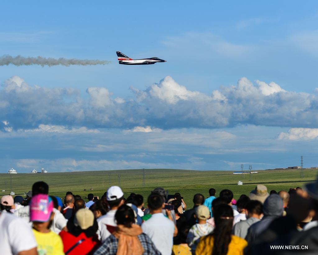 هولونبوير، منغوليا الداخلية 26 يوليو 2021 (شينخوا) في الصورة الملتقطة يوم 23 يوليو 2021، جانب من مهرجان للعروض الجوية أقيم مؤخرا في مرعى هولونبوير بمنطقة منغوليا الداخلية ذاتية الحكم بشمالي الصين حيث اجتذب كثيرا من الزوار.