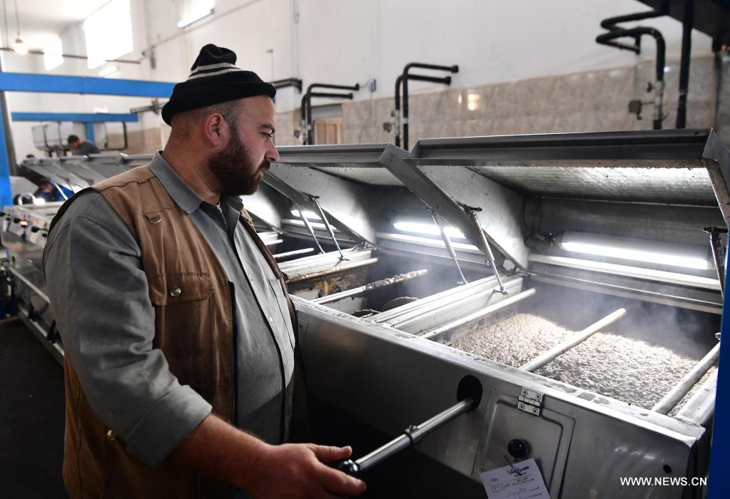 في الصورة الملتقطة يوم 11 نوفمبر 2021، عامل يشغل ماكينة لعصر الزيتون واستخراج الزيت منه ويترك تفل الزيتون جانبا لإجراء عملية أخرى لتحويله إلى وقود في مصنع في محافظة حمص بوسط سوريا. وخلال أيام البرد في فصل الشتاء العاشر خلال الحرب، أصبح تفل الزيتون أول خيار للعديد من السوريين لاستخدامه كوقود للتدفئة وسط نقص الديزل.