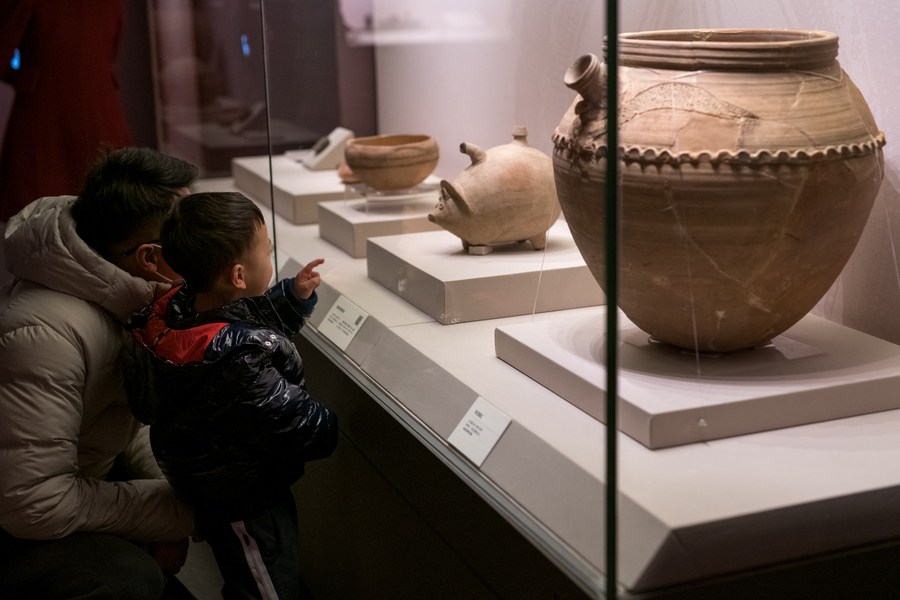 إناء خزفي. (صورة مقدمة من متحف موقع "جينشا" الأثري / شينخوا)