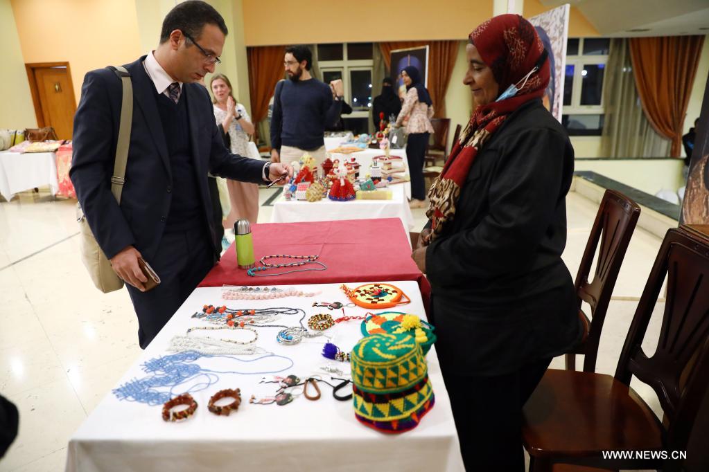 أسوان، مصر 26 فبراير 2022 (شينخوا) تزينت إحدى الطاولات بقاعة عرض في مدينة أسوان الساحرة بصعيد مصر، بمجموعة متنوعة من مشغولات الكروشيه منها دمى الدببة وحقائب اليد والقبعات والمزهريات، جذبت الأنظار بنقوشها وألوانها الزاهية.