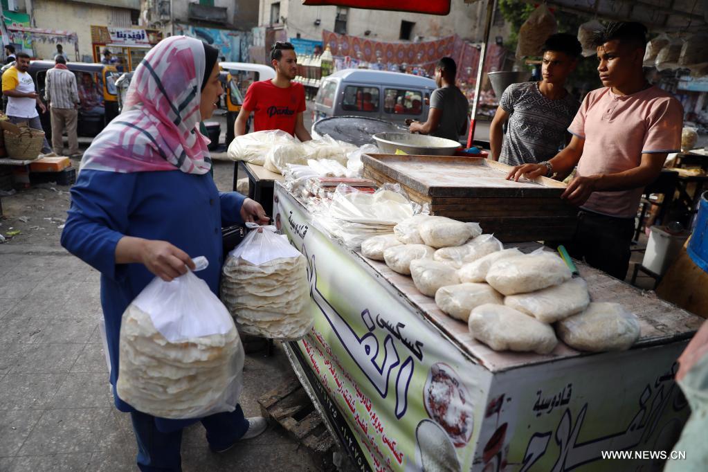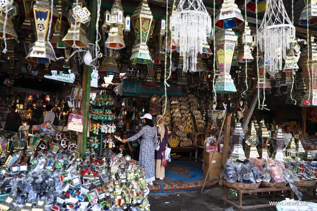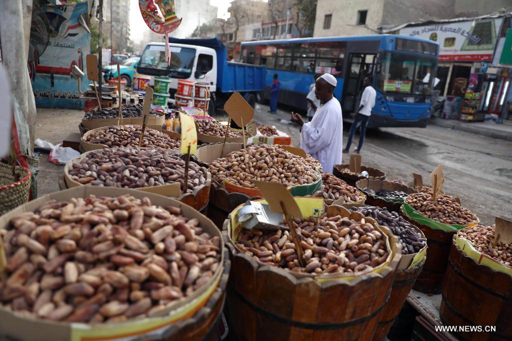 القاهرة 7 أبريل 2022 (شينخوا) في الصورة الملتقطة يوم 6 أبريل 2022، رجل يشتري تمرا بسوق في العاصمة المصرية القاهرة، خلال شهر رمضان المعظم.