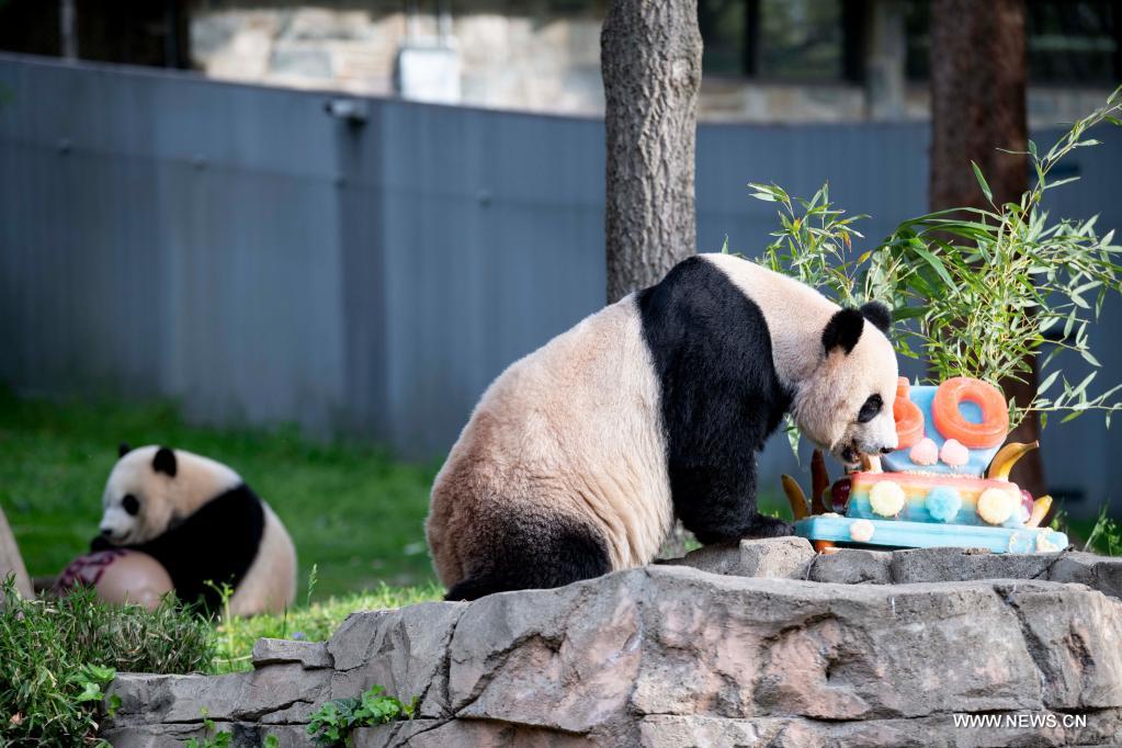 جاءت "عروض الأكل" في إطار حفل "باندافيرساري بارتي" الذي أقيم في حديقة الحيوان احتفالا بالذكرى الـ50 لإطلاق برنامج الباندا العملاقة وعقود من التعاون بين الصين والولايات المتحدة في إنقاذ الدببة من الانقراض.