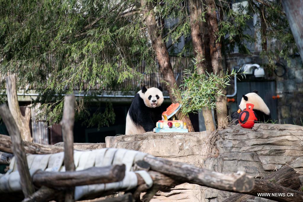 فقد استمتع الزوار بمشاهدة الشبل الذكر "شياو تشي جي" وأمه "مي شيانغ" وهما يلتهمان حلوى مجمدة في فناء خارجي بموئل الباندا العملاقة الشهير داخل حديقة الحيوان في الصباح، فضلا عن الشبل الذكر البالغ "تيان تيان" وهو يتلقى كعكة الثلج خاصته مع الغداء عند الظهيرة.