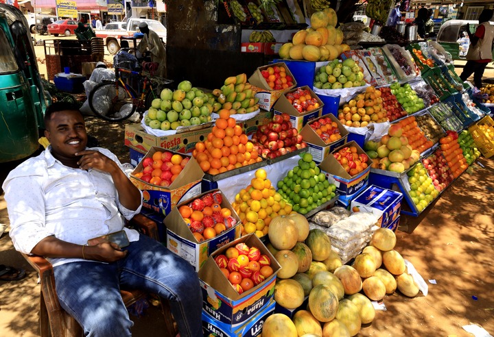 بائع فواكه يعرض بضاعته لتلبية حاجات الزبائن في الخرطوم، السودان.(شينخوا)