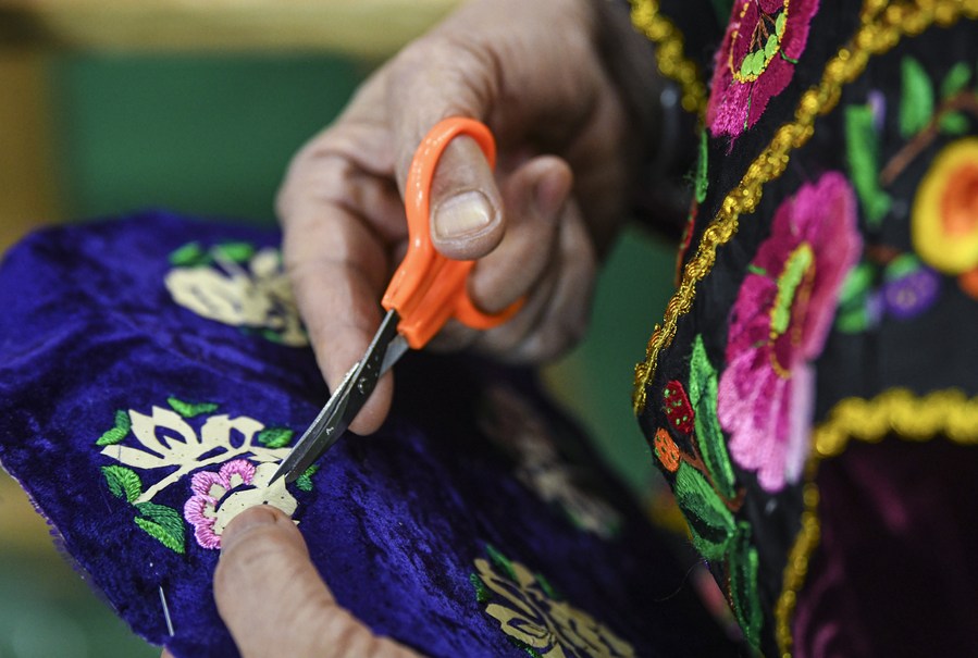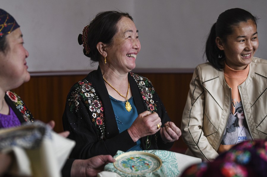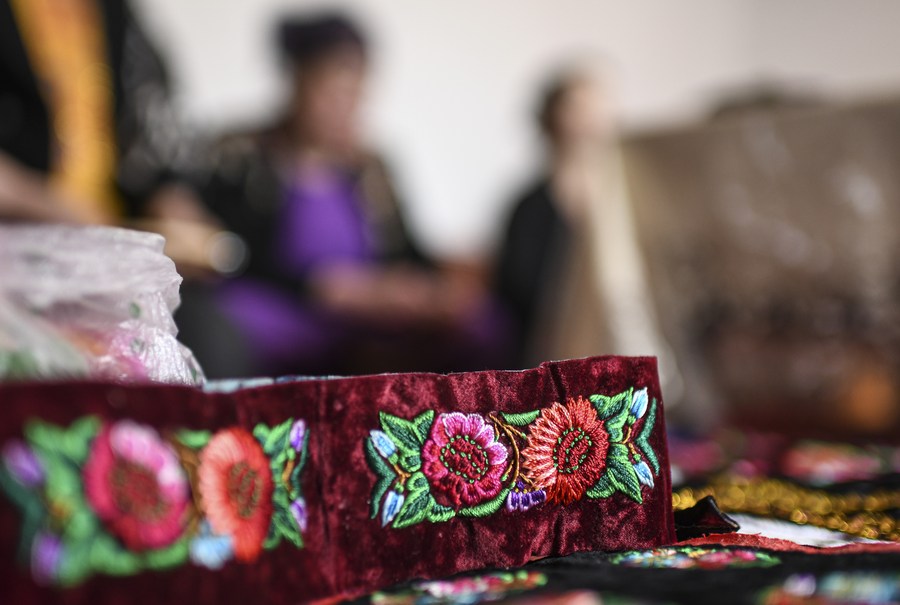 (وسائط متعددة) مهارات التطريز تمنح النساء الريفيات في منطقة شينجيانغ الفرصة لكسب المال