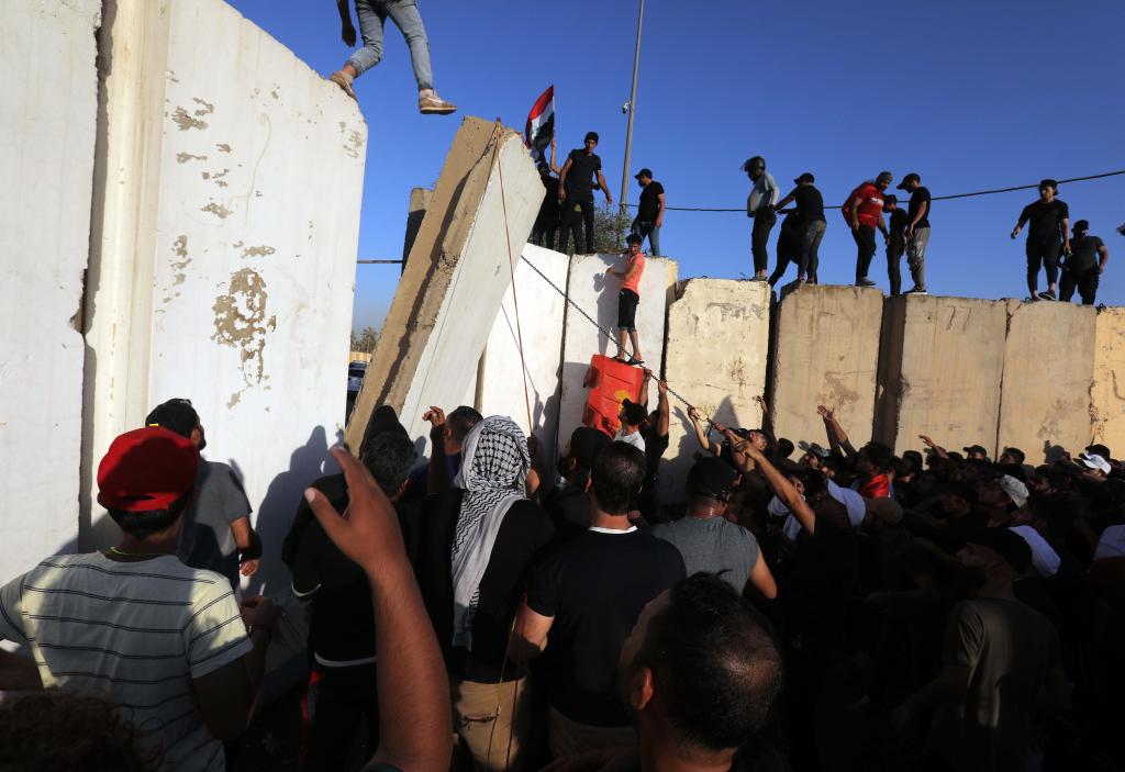 أتباع مقتدى الصدر يحاولون اقتحام المنطقة الخضراء شديدة التحصين في بغداد، 27 يوليو 2022. (شينخوا)