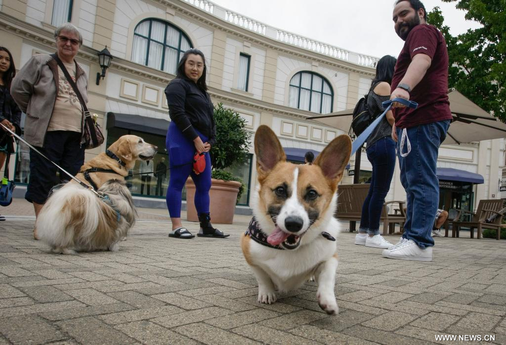 فانكوفر 27 أغسطس 2022 (شينخوا) في الصورة الملتقطة يوم 26 أغسطس 2022، أشخاص يتجمعون مع كلابهم خلال الاحتفال باليوم العالمي للكلاب في فانكوفر، كولومبيا البريطانية، بكندا.