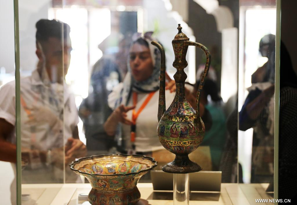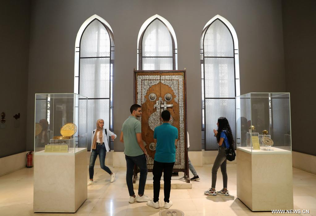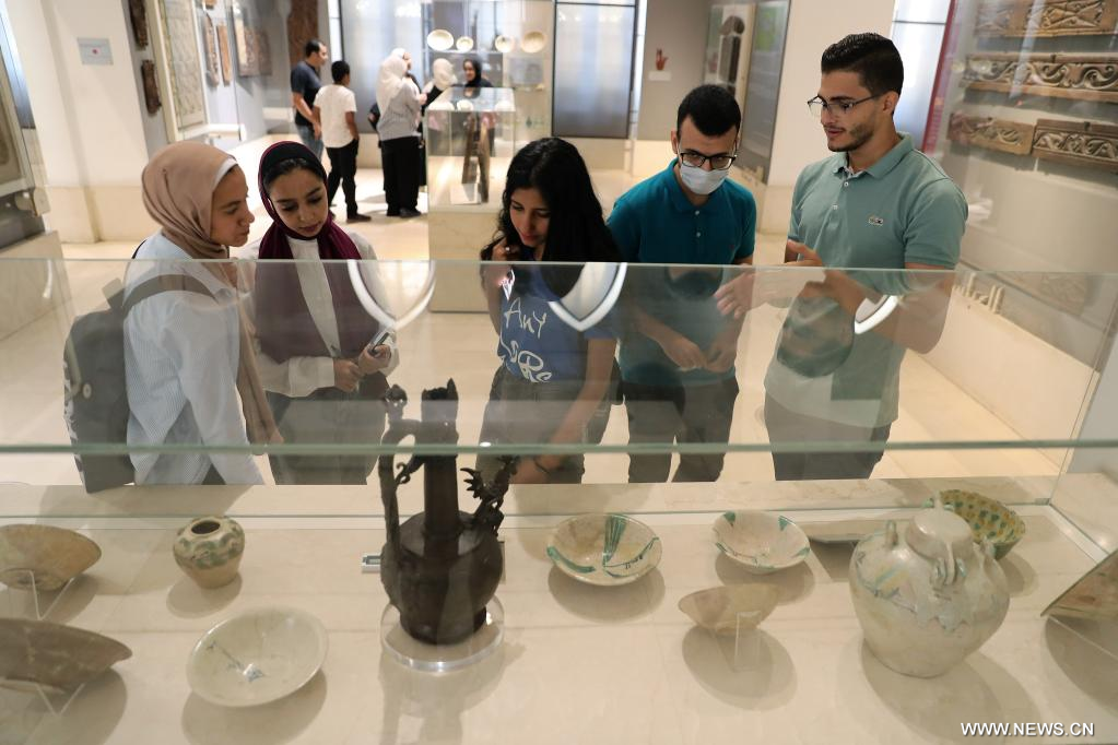 القاهرة 31 أغسطس 2022 (شينخوا) في الصورة الملتقطة يوم 31 أغسطس 2022، زوار يطالعون المعروضات في متحف الفن الإسلامي في القاهرة بمصر. يعتبر متحف الفن الإسلامي في القاهرة أحد أكبر متاحف الفن الإسلامي في العالم، حيث يضم ما يقرب من 100 ألف قطعة أثرية إسلامية.