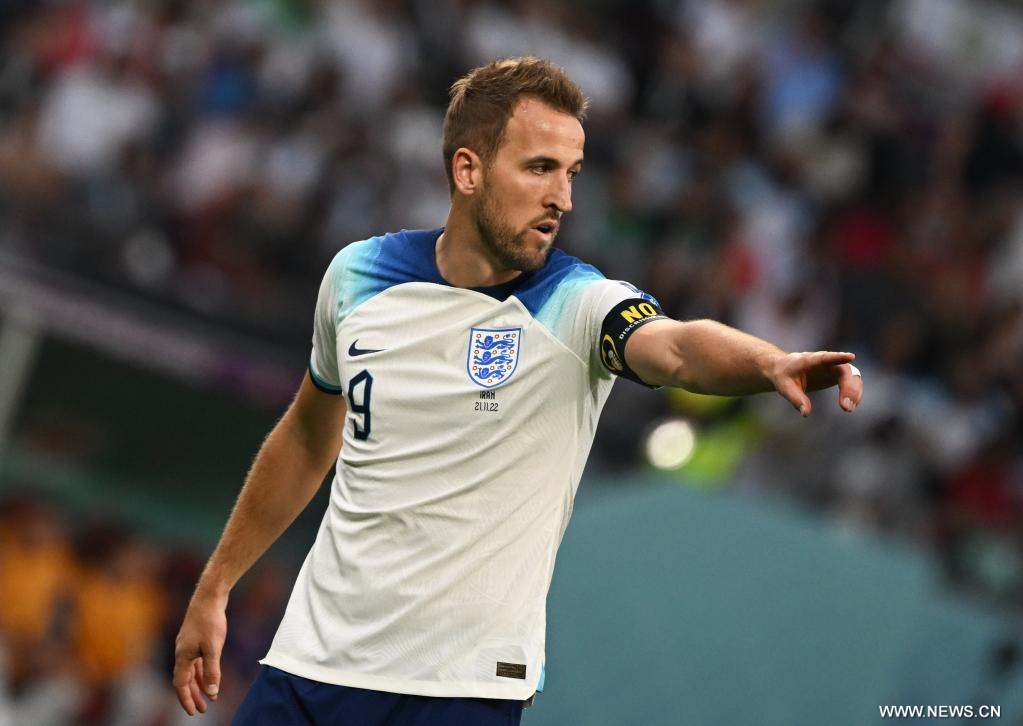 في الصورة الملتقطة يوم 21 نوفمبر 2022، لاعب المنتخب الإنجليزي هاري كين يتفاعل خلال المباراة ضد منتخب إيران ضمن المجموعة الثانية في مونديال فيفا قطر 2022 على استاد خليفة الدولي في الدوحة.