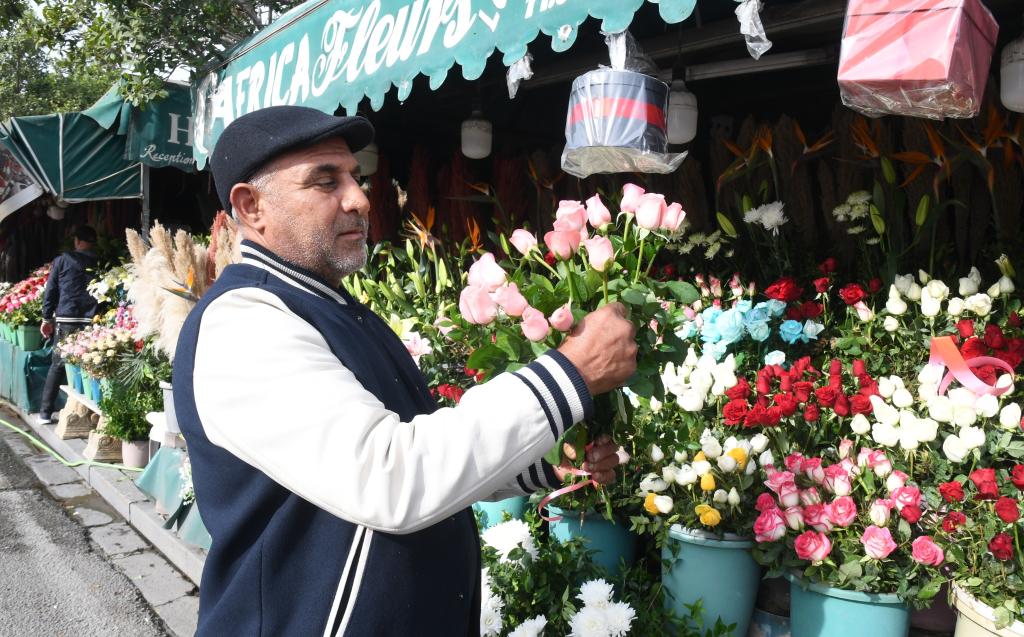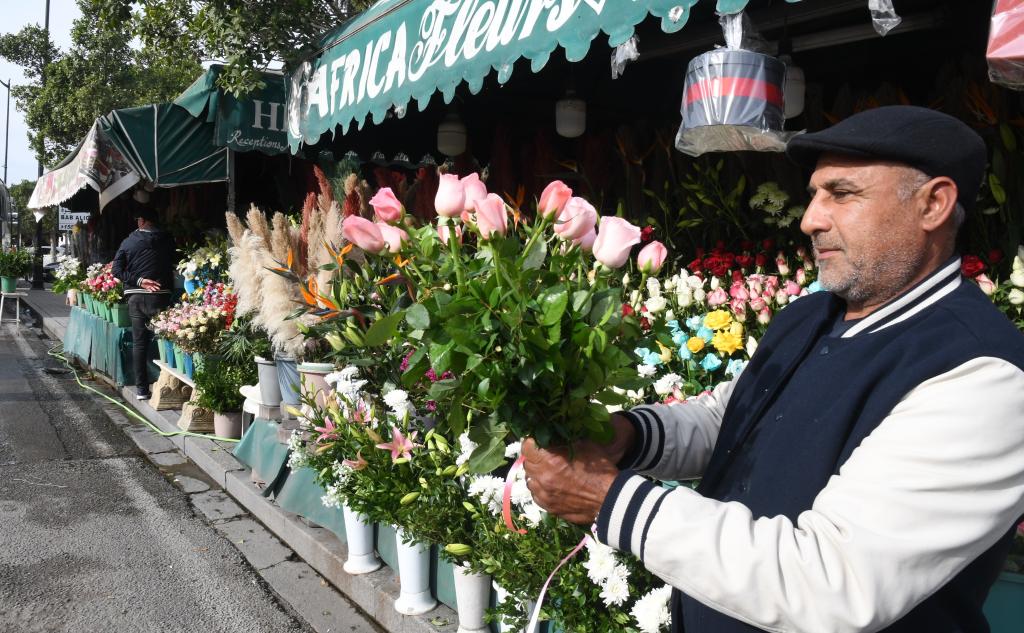 تونس 29 ديسمبر 2022 (شينخوا) في الصورة الملتقطة يوم 29 ديسمبر 2022، بائع يعرض الزهور للزبائن في سوق للزهور في تونس العاصمة.
