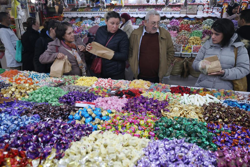 البليدة (الجزائر) 9 يناير 2023 (شينخوا) في الصورة الملتقطة يوم 9 يناير 2023، أشخاص يبتاعون الحلوى قبل رأس السنة الأمازيغية الجديدة في إحدى أسواق مدينة البليدة بالجزائر. يحتفل الأمازيغ في الجزائر برأس السنة الأمازيغية الجديدة في 12 يناير.