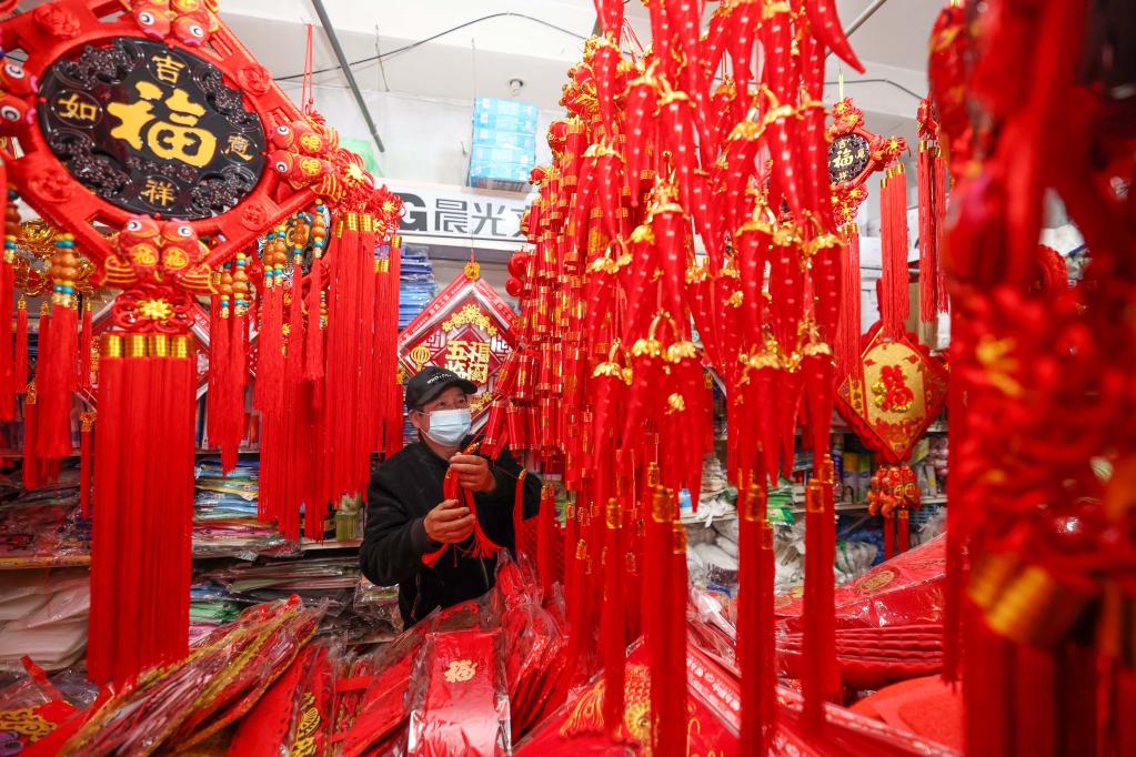 ومع اقتراب عيد الربيع، أو رأس السنة الصينية التقليدية، يتهافت الناس على شراء الزينات الحمراء التقليدية استعدادا لاستقبال عيد الربيع الذي يصادف 22 يناير من العام الجاري.