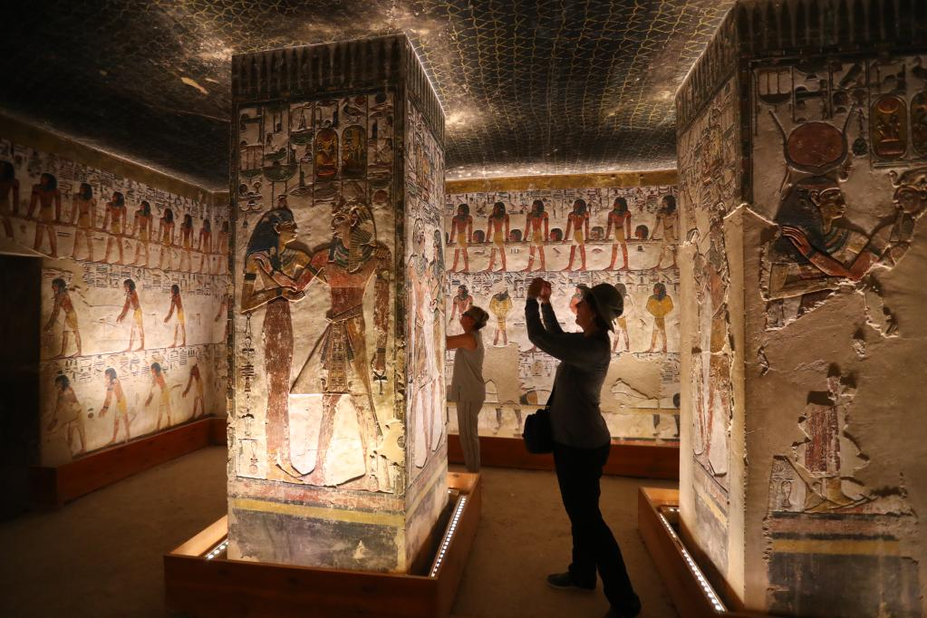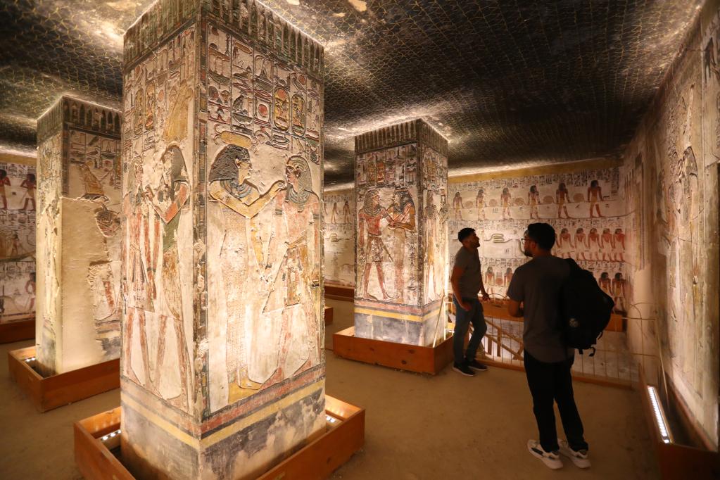 الأقصر 25 يناير 2023 (شينخوا) في الصورة الملتقطة يوم 24 يناير 2023، سياح يزورون مقبرة الملك سيتي الأول بوادي الملوك في محافظة الأقصر بمصر. تشتهر مقبرة الملك سيتي الأول بنقوشها الملونة المحفوظة جيدا.