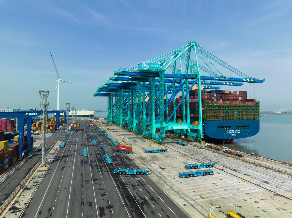 ارتفاع حجم مناولة الحاويات في ميناء تيانجين بشمالي الصين