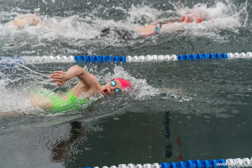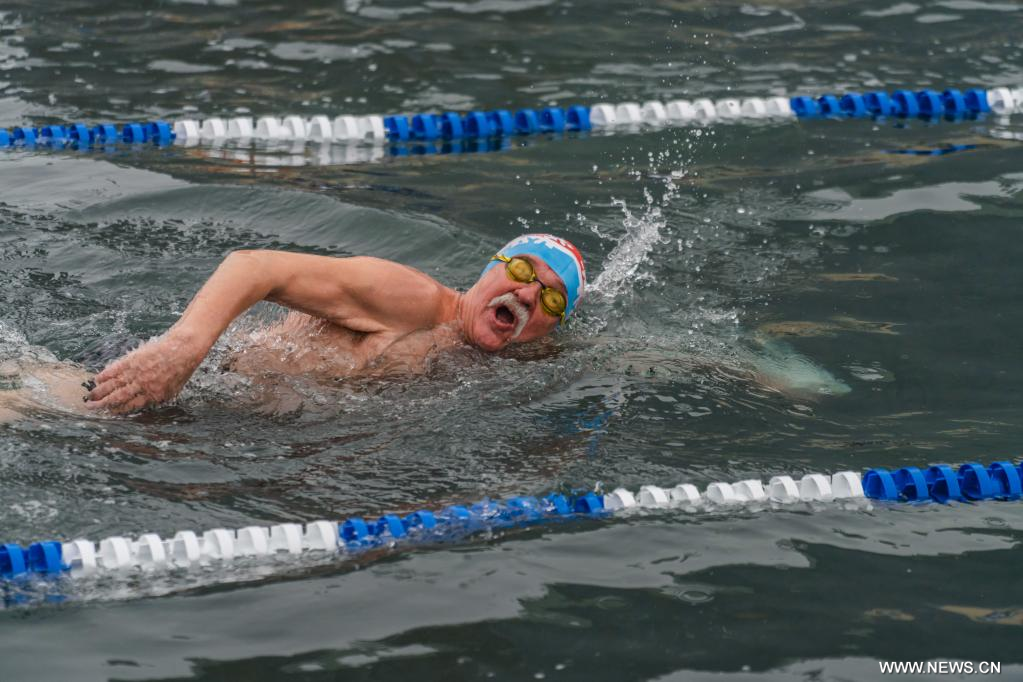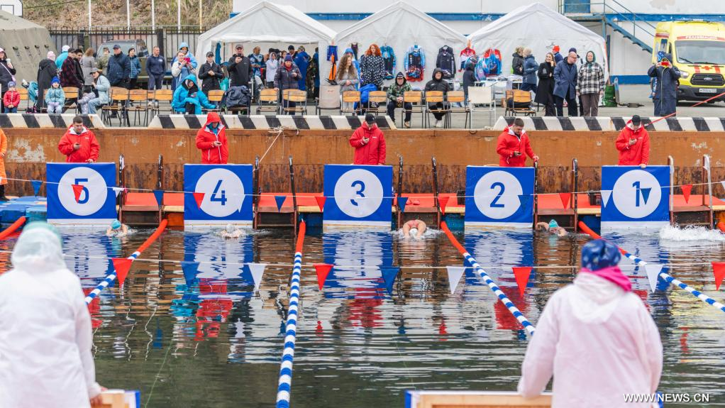 فلاديفوستوك 29 أبريل 2023 (شينخوا) في الصورة الملتقطة يوم 29 أبريل 2023، أشخاص يتنافسون في بطولة السباحة في فلاديفوستوك بروسيا. يشارك نحو 180 سباحا في المسابقة اليوم (السبت).