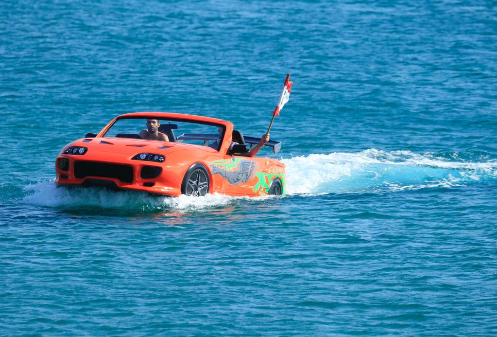 الصورة: قارب على شكل سيارة في مياه لبنان