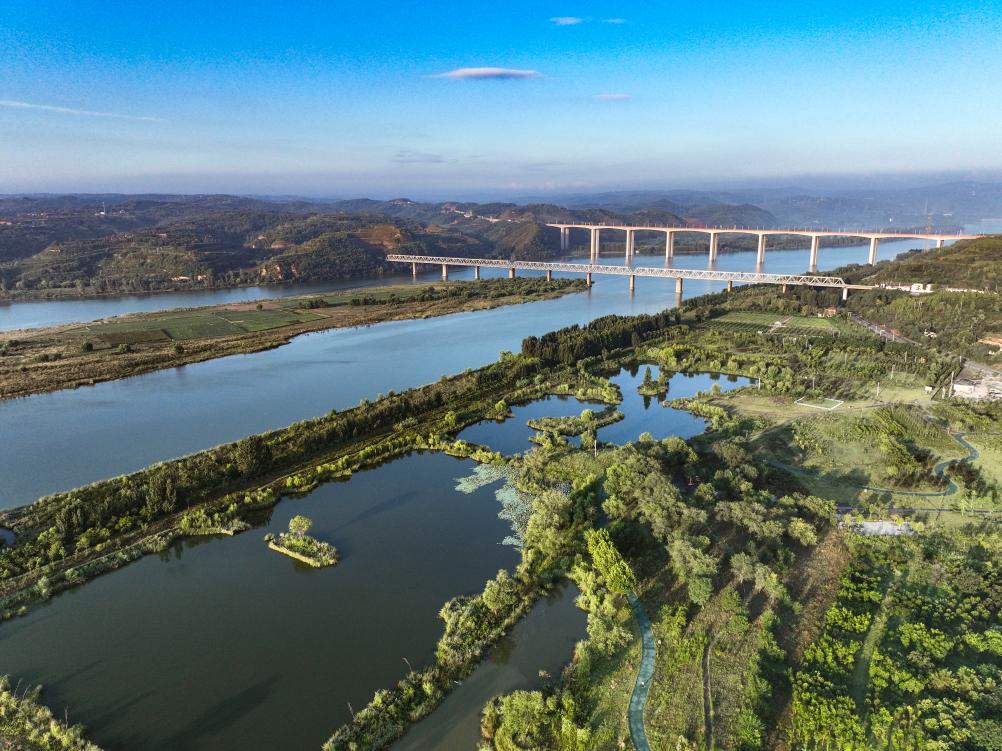 جييوان 29 أغسطس 2023 (شينخوا) في الصورة الملتقطة جوًا يوم 28 أغسطس 2023، منظر في قسم جييوان من المحمية الطبيعية الوطنية للأراضي الرطبة على النهر الأصفر في مقاطعة خنان بوسط الصين.