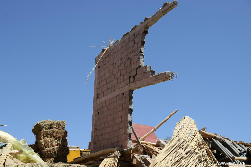 في الصورة الملتقطة يوم 10 سبتمبر 2023، مبنى محطم بسبب الزلزال في قرية أمزميز بالمغرب.