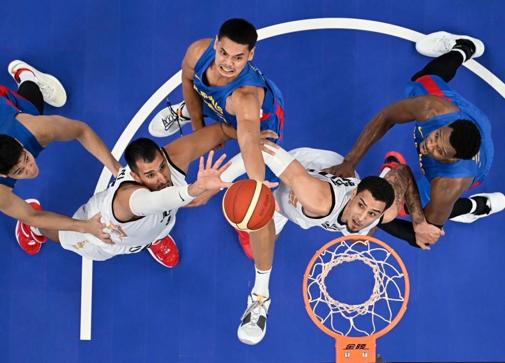 هانغتشو 30 سبتمبر 2023 (شينخوا) في الصورة الملتقطة يوم 30 سبتمبر 2023، رياضيون يتنافسون خلال مباراة ضمن مجموعة الدور التمهيدي لكرة السلة رجال بين منتخبي الأردن والفلبين في دورة الألعاب الآسيوية الـ19 في هانغتشو بمقاطعة تشجيانغ شرقي الصين.