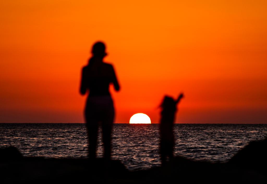 بيروت 5 أكتوبر 2023 (شينخوا) في الصورة الملتقطة يوم 5 أكتوبر 2023، صورة ظلية على خلفية غروب الشمس لشخصين بالعاصمة اللبنانية، بيروت.