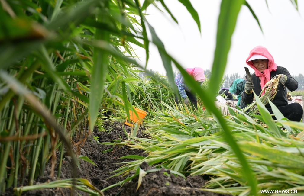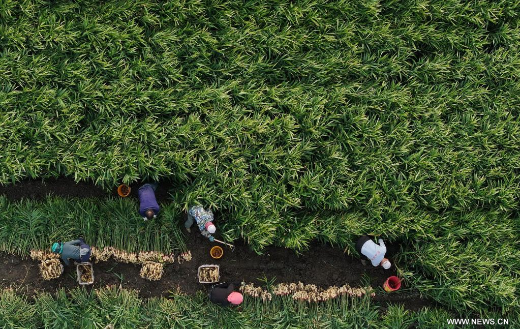 موسم الانشغال بحصاد الزنجبيل في شمالي الصين