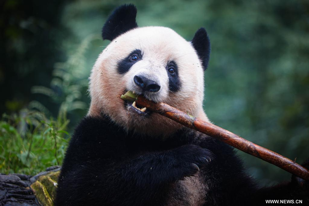 في الصورة الملتقطة يوم 8 أكتوبر 2023، الباندا العملاقة شيانغ شيانغ تأكل الخيزران الطازج في قاعدة بيفنغشيا للباندا العملاقة في ياآن بمقاطعة سيتشوان جنوب غربي الصين. والتقت الباندا العملاقة الأنثى شيانغ شيانغ بالجمهور في قاعدة بيفنغشيا للباندا العملاقة يوم الأحد الماضي. غادرت شيانغ شيانغ حديقة أوينو للحيوان في طوكيو باليابان في 21 فبراير 2023 وعادت إلى وطنها الصين. ولدت شيانغ شيانغ في حديقة أوينو للحيوان في يونيو 2017 للأبوين شين شين (أنثى) وري ري (ذكر)، وهما معاران من الصين، على أن تنتمي ملكية الأشبال التي يلدانها إلى الصين.