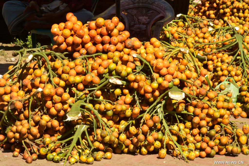 كوكس بازار 29 نوفمبر 2023 (شينخوا) في الصورة الملتقطة يوم 26 نوفمبر 2023، ثمار جوز التنبول المحصودة حديثا في سوق في مدينة كوكس بازار في بنجلاديش.