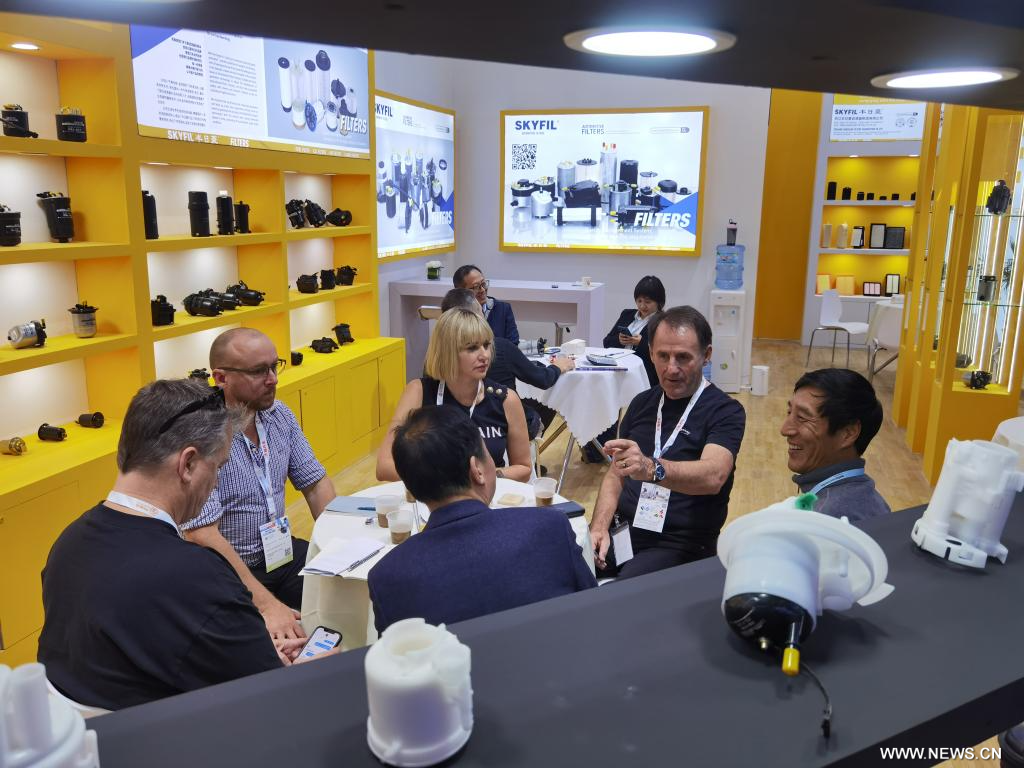 شانغهاي أول نوفمبر 2023 (شينخوا) في الصورة الملتقطة يوم 29 نوفمبر 2023، زوار يتجولون في معرض شانغهاي التجاري الدولي لموردي قطع غيار السيارات والمعدات والخدمات في شانغهاي بشرق الصين. وتجتمع أكثر من 5600 شركة من داخل الصين وخارجها في شانغهاي للمشاركة في المعرض.