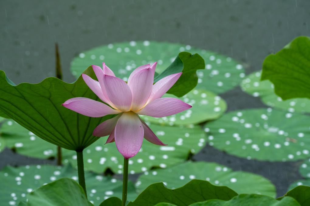 نانجينغ 22 يونيو 2024 (شينخوا) في الصورة الملتقطة يوم 21 يونيو 2024، زهرة لوتس تحت المطر في حديقة بمدينة نانجينغ في مقاطعة جيانغسو بشرقي الصين.