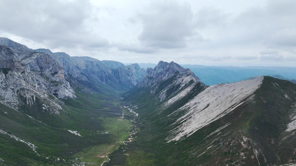 قاننان 29 يونيو 2024 (شينخوا) في الصورة الجوية الملتقطة يوم 27 يونيو 2024، مناظر خلابة في جبل قوانغقاي في ولاية قاننان ذاتية الحكم للقومية التبتية في مقاطعة قانسو بشمال غربي الصين.