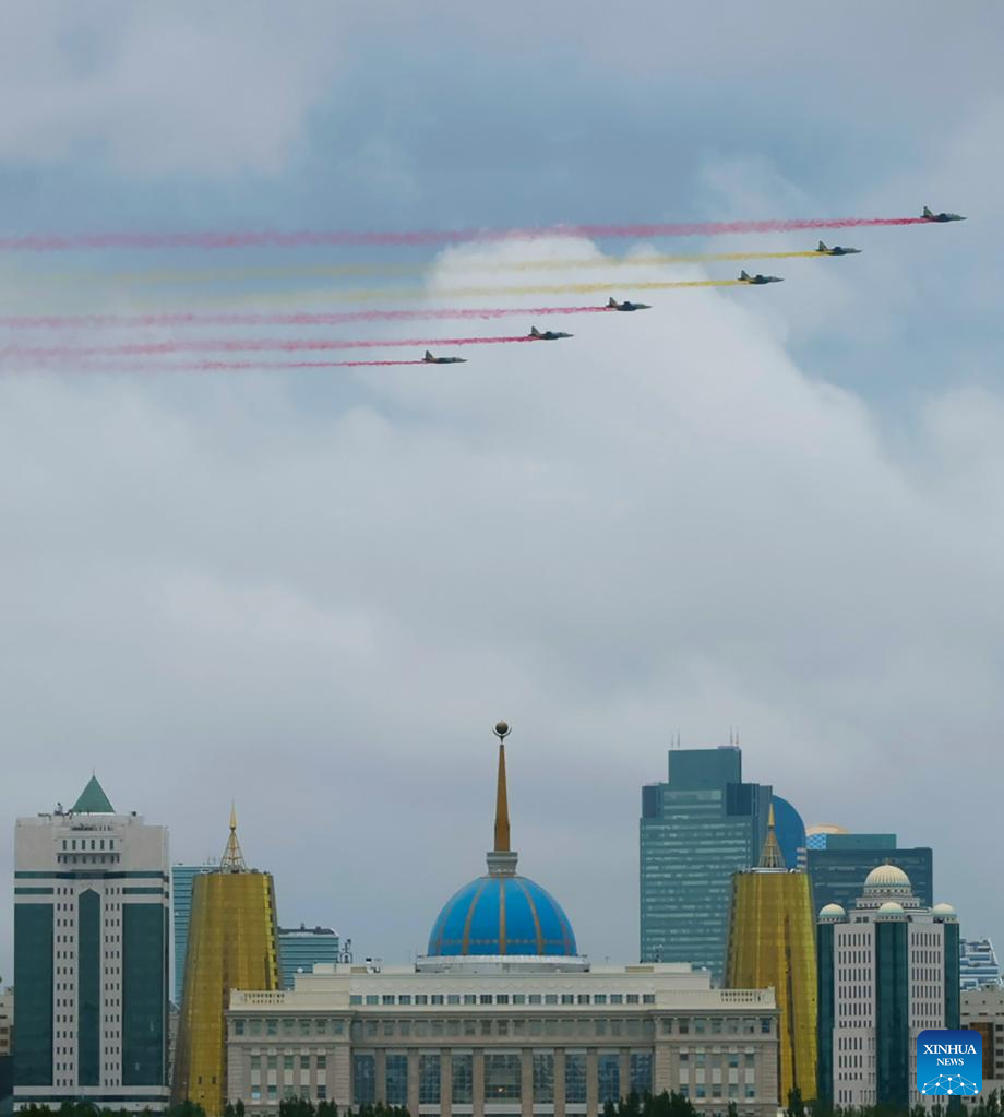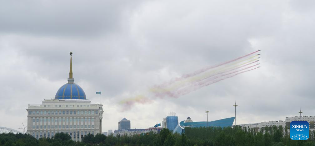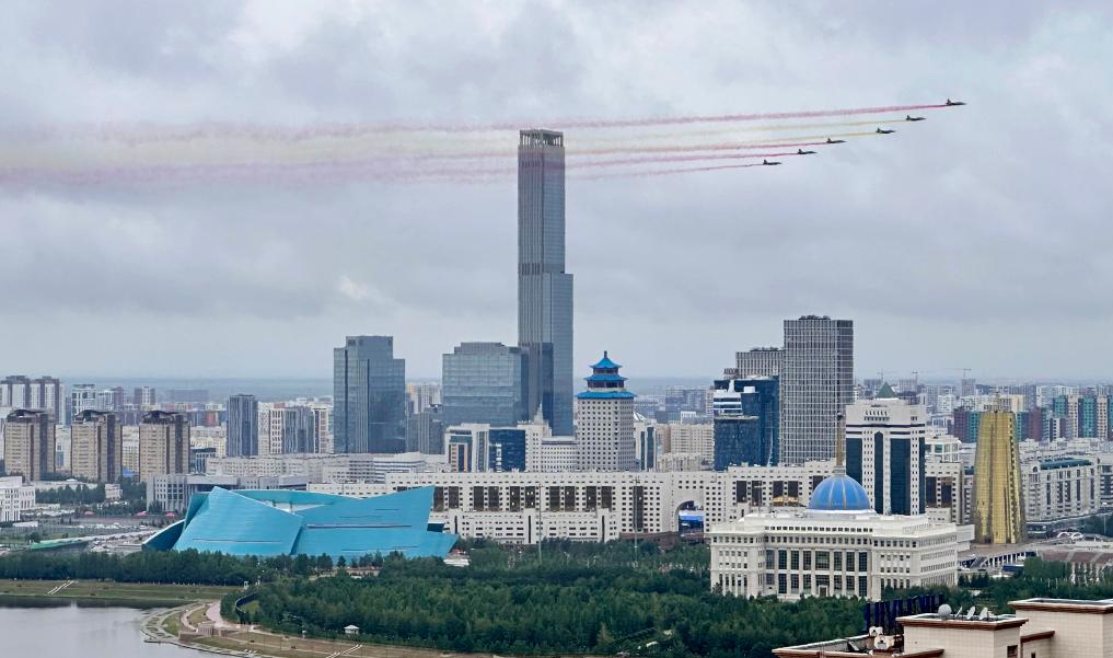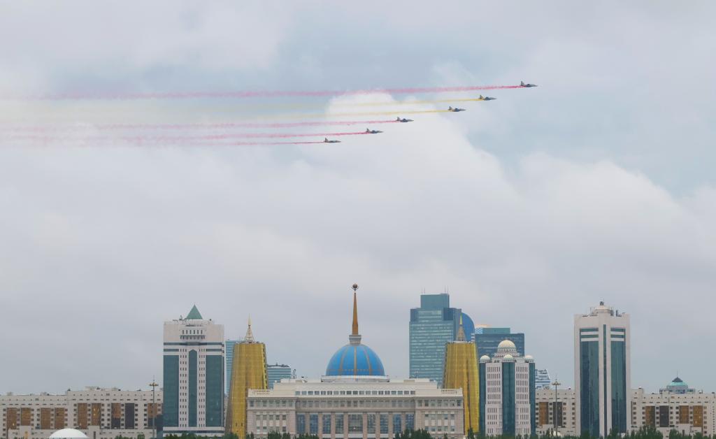 طائرات تزركش سماء كازاخستان بخطوط دخانية بألوان العلم الصيني ترحيبا بالرئيس شي